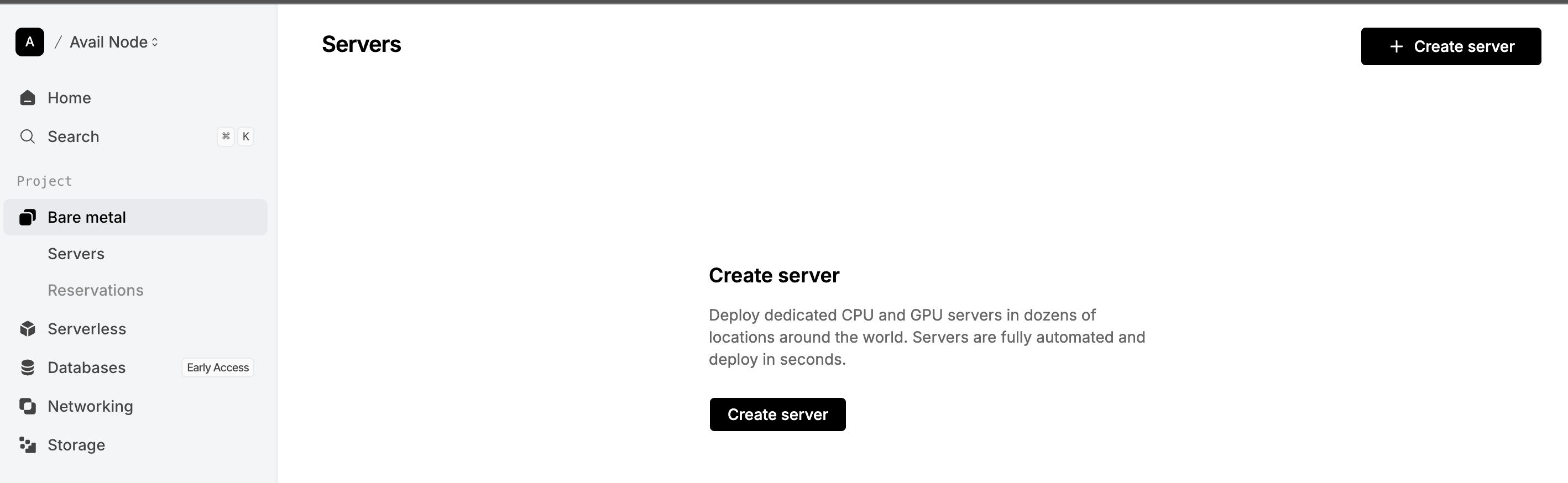 Click on the ‘Create Server’ button and choose your desired location and image.