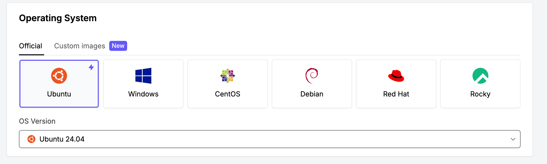 - Click on the ‘Create Server’ button and choose your desired location and image. We’re using Ubuntu 24 for this guide.